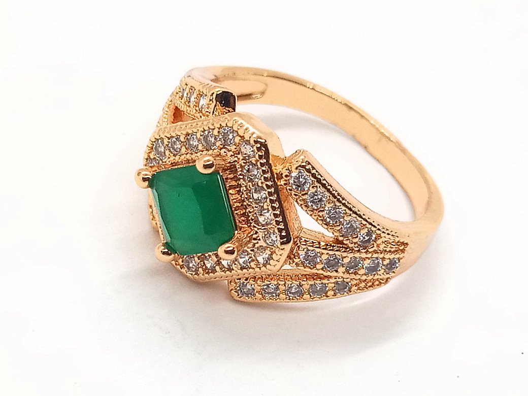 Beautiful Ring Green stone & White Zarkon with Dold MaskingBeautiful Ring Green stone & White Zarkon with Dold Masking