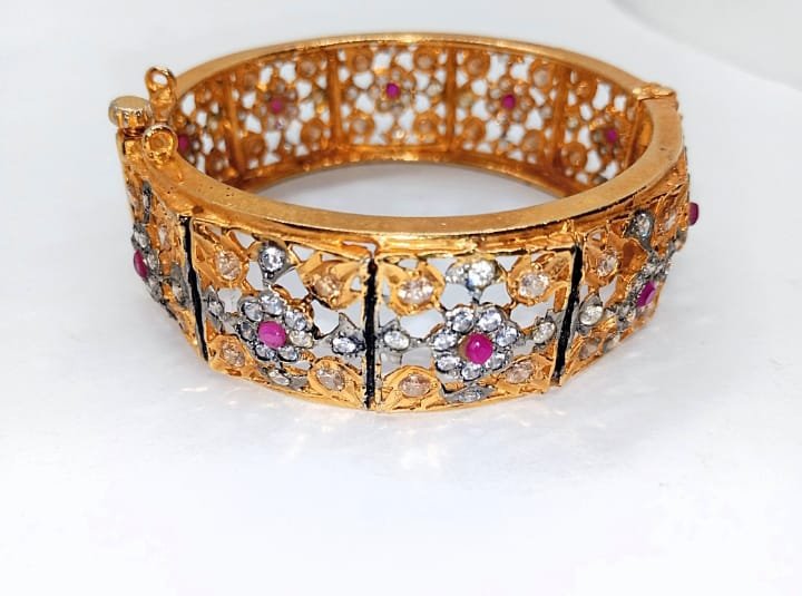 High Copy Diamond Polki Gold Plated Bangle.[MULTI]